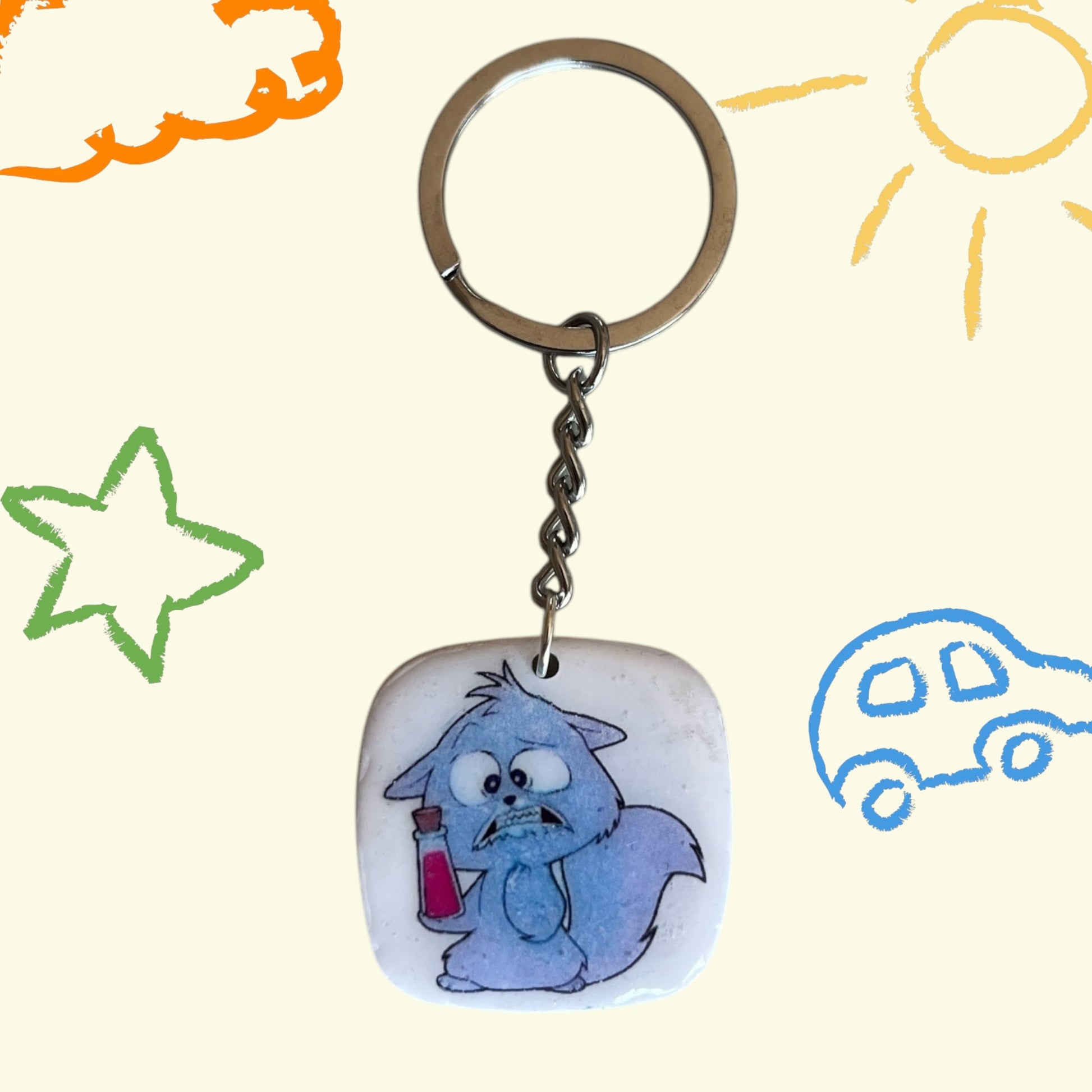 Llavero en forma cuadrada con esquinas redondeadas con estampado de ardilla.