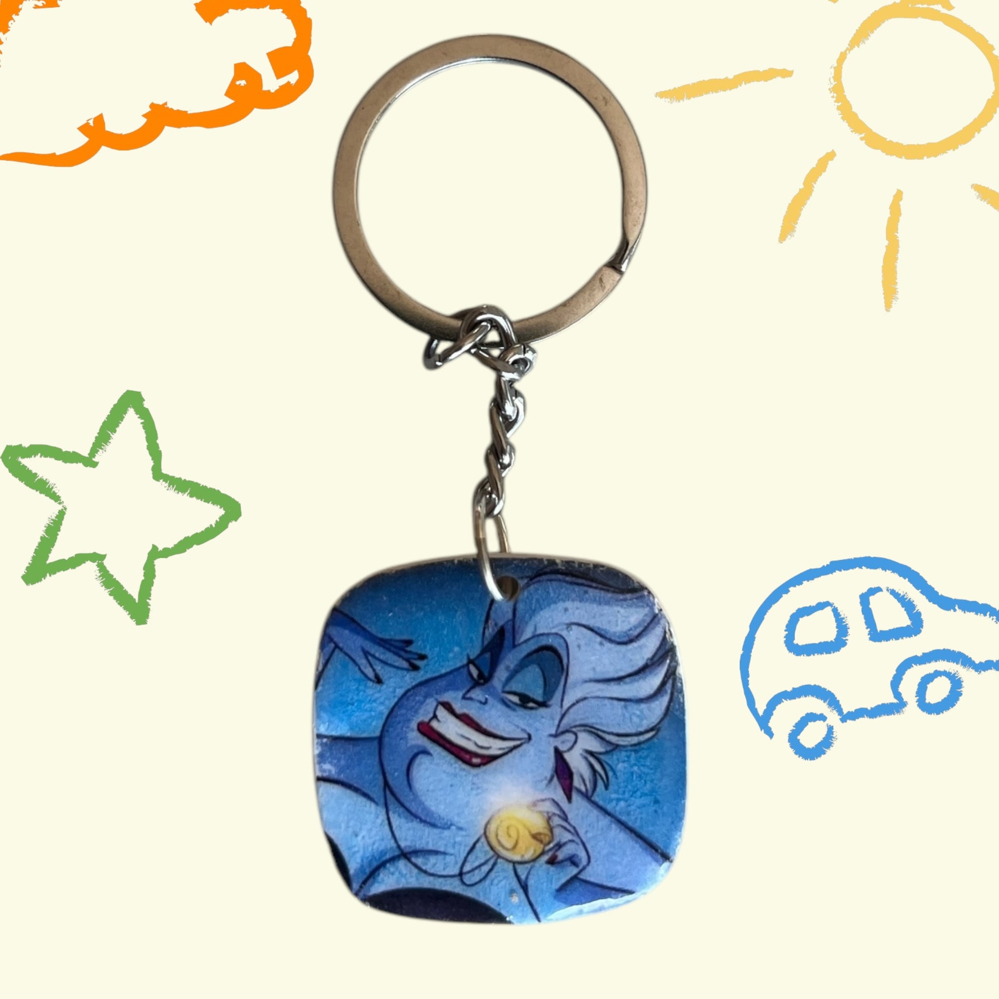 Llavero en forma cuadrada con esquinas redondeadas con estampado de Úrsula.
