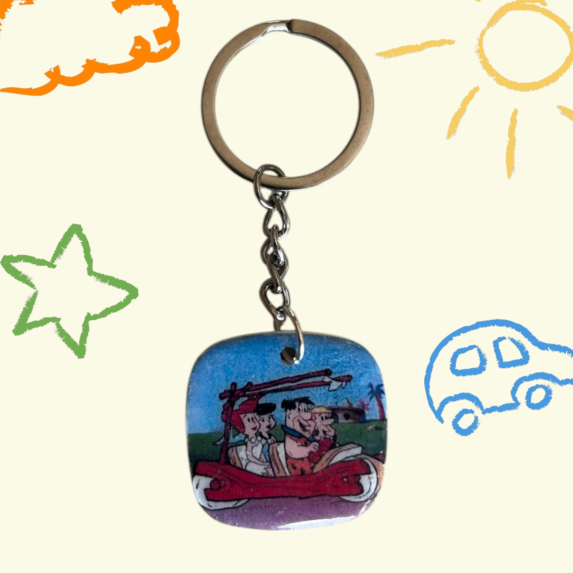 Llavero en forma cuadrada con esquinas redondeadas con estampado de los Picapiedra