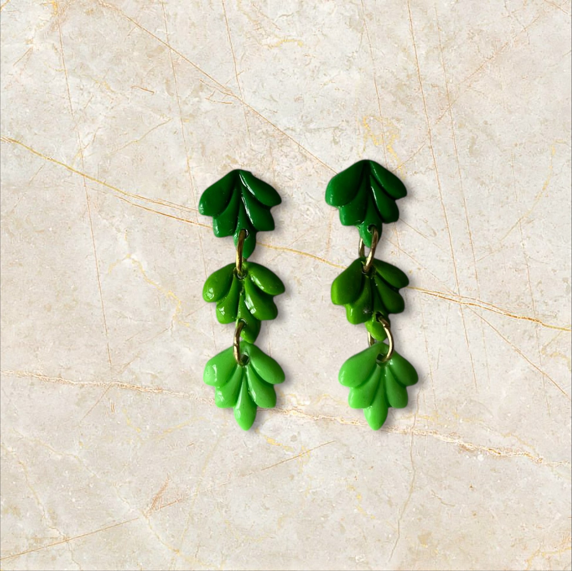Modelo Pocahontas de tres piezas en tonos rosas en forma de hoja. El pendiente mide 5 cm en total.