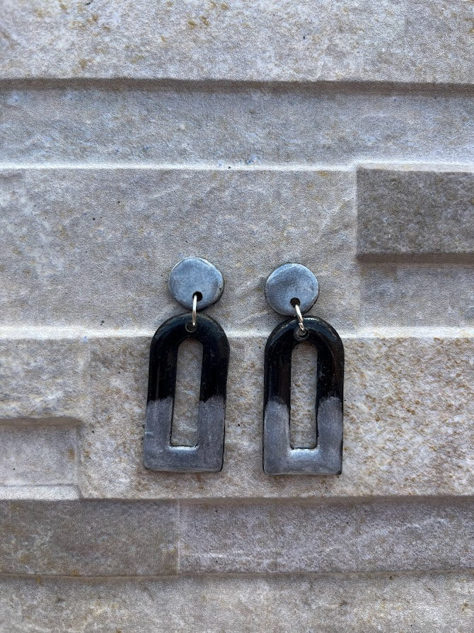 Modelo Soraya en forma de arco en negro y polvo de mica plateado.