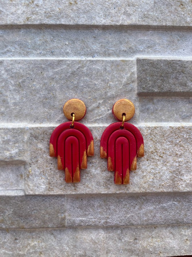 Modelo Soraya con forma Fátima en rojo cereza y polvo de mica dorado.