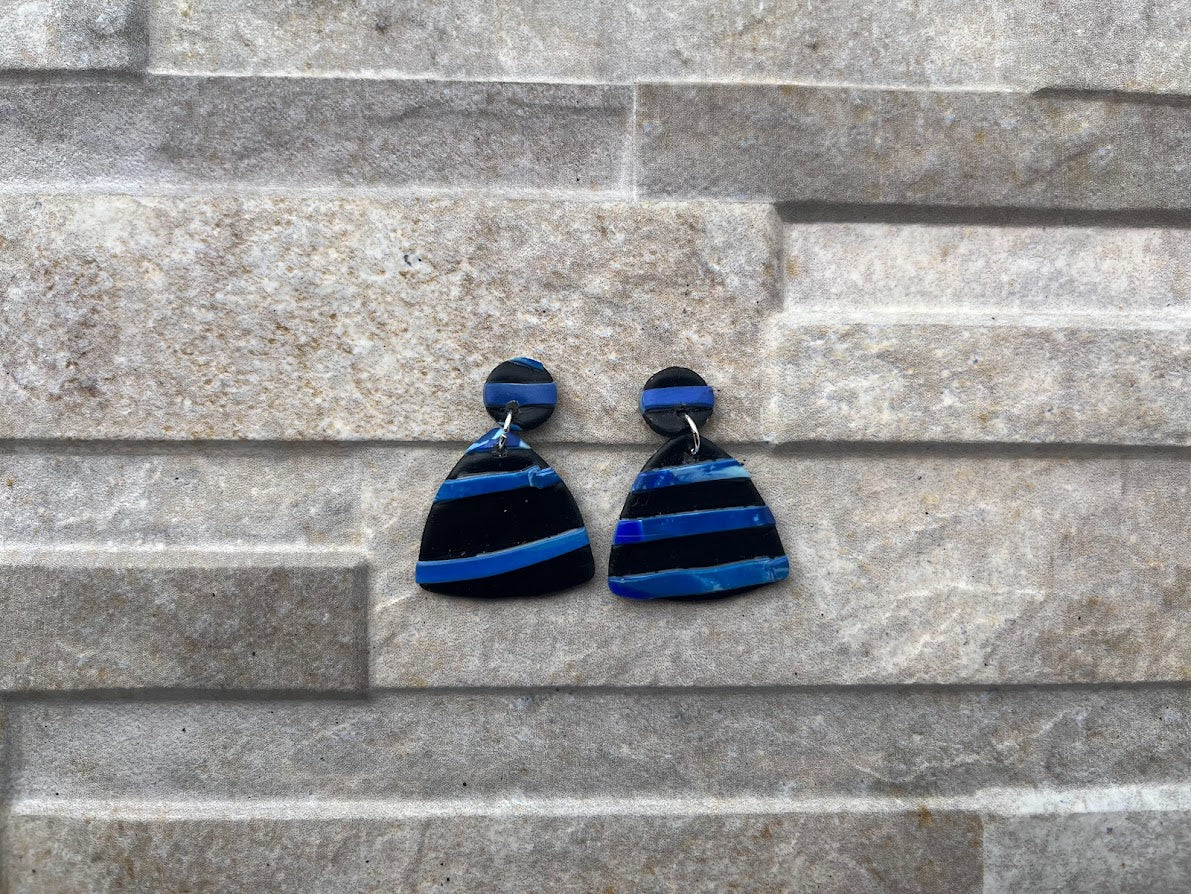 Modelo Tapies en forma triangular en tonos azules sobre base de color negro.